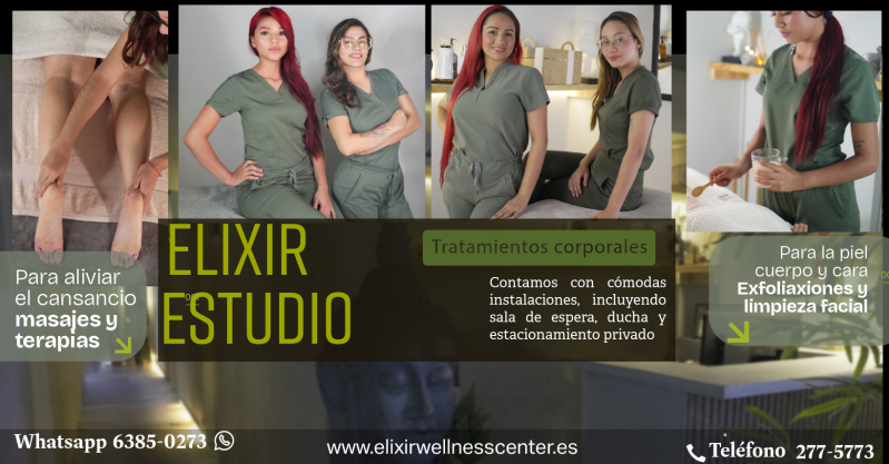 En ELIXIR ESTUDIO, cada detalle está pensado para brindarte una experiencia única de confort y bienestar, donde la tranquilidad se fusiona con una atención cálida y personalizada. Nos dedicamos a cuidar de ti con profesionalismo y pasión, ofreciendo servicios de la más alta calidad que no solo relajan tu cuerpo, sino que también renuevan tu energía y realzan tu belleza natural, porque creemos que mereces lo mejor en cada moment:o